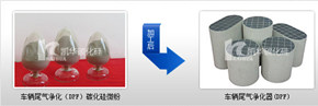 柴油車顆粒捕集器,是經特殊工藝提純處理的高純度碳化硅微粉為原料,按配方攪拌、煉泥、沉浮、成型燒制做成。產品壁流式結構,過濾體整體呈多通道蜂窩狀,再把平行通道進行相間堵孔,使其顆粒尾氣的捕集和凈化效果達到以上,引領國際先進水平。